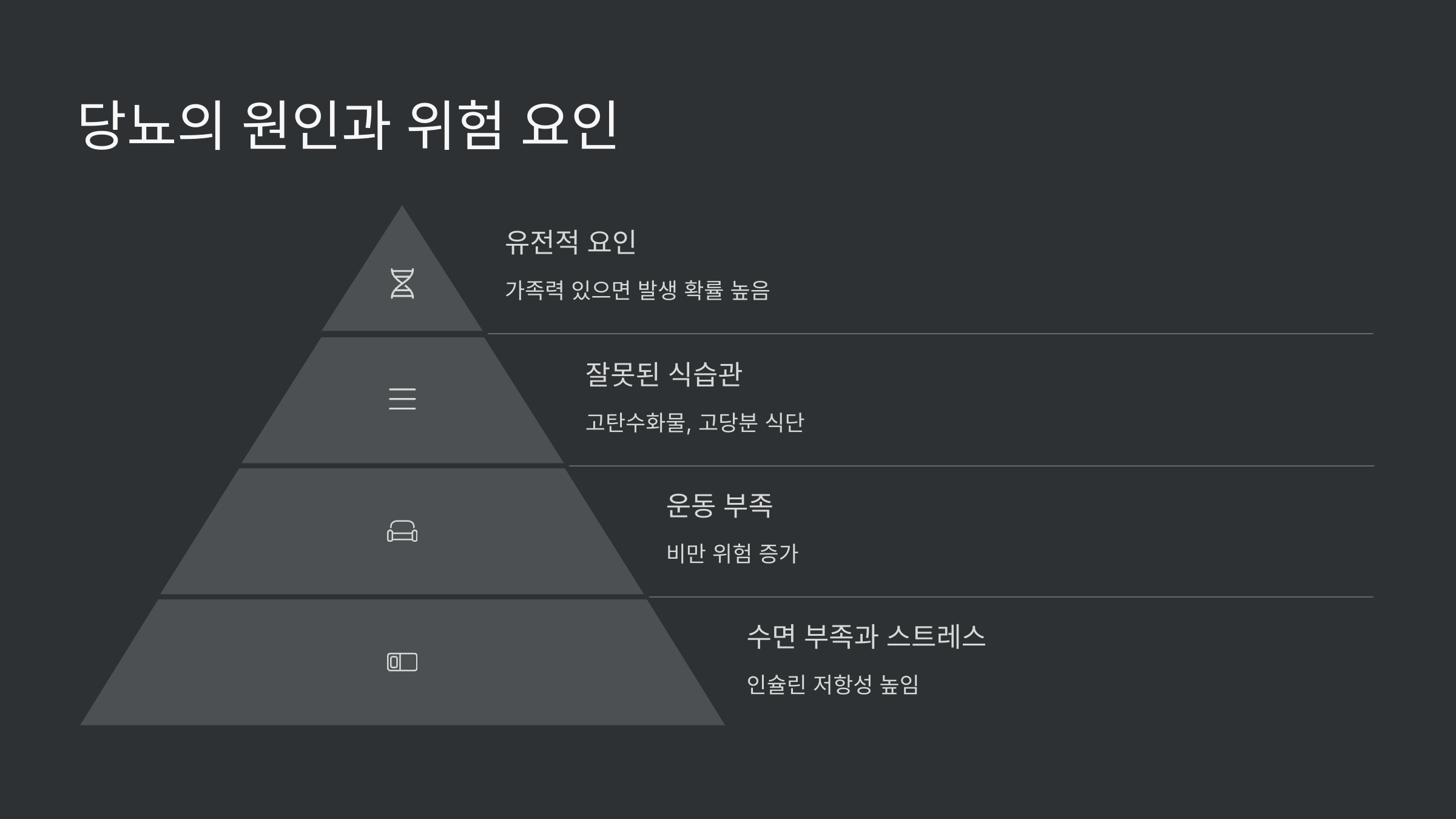 이러한 요인을 피하는 것이 당뇨 예방의 핵심입니다! ✅