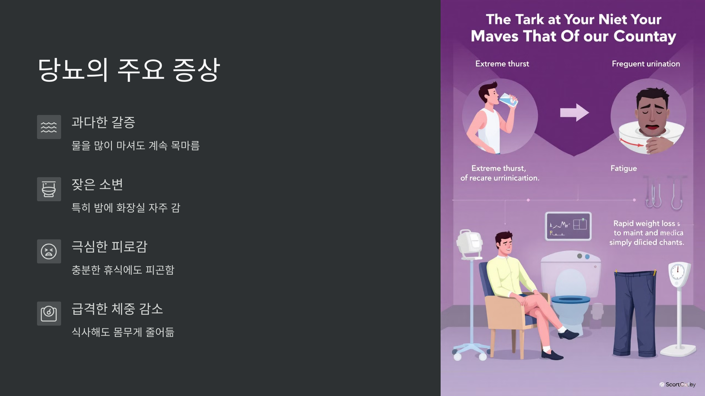 당뇨병을 의심할 수 있는 대표적인 증상들을 정리해볼게요.