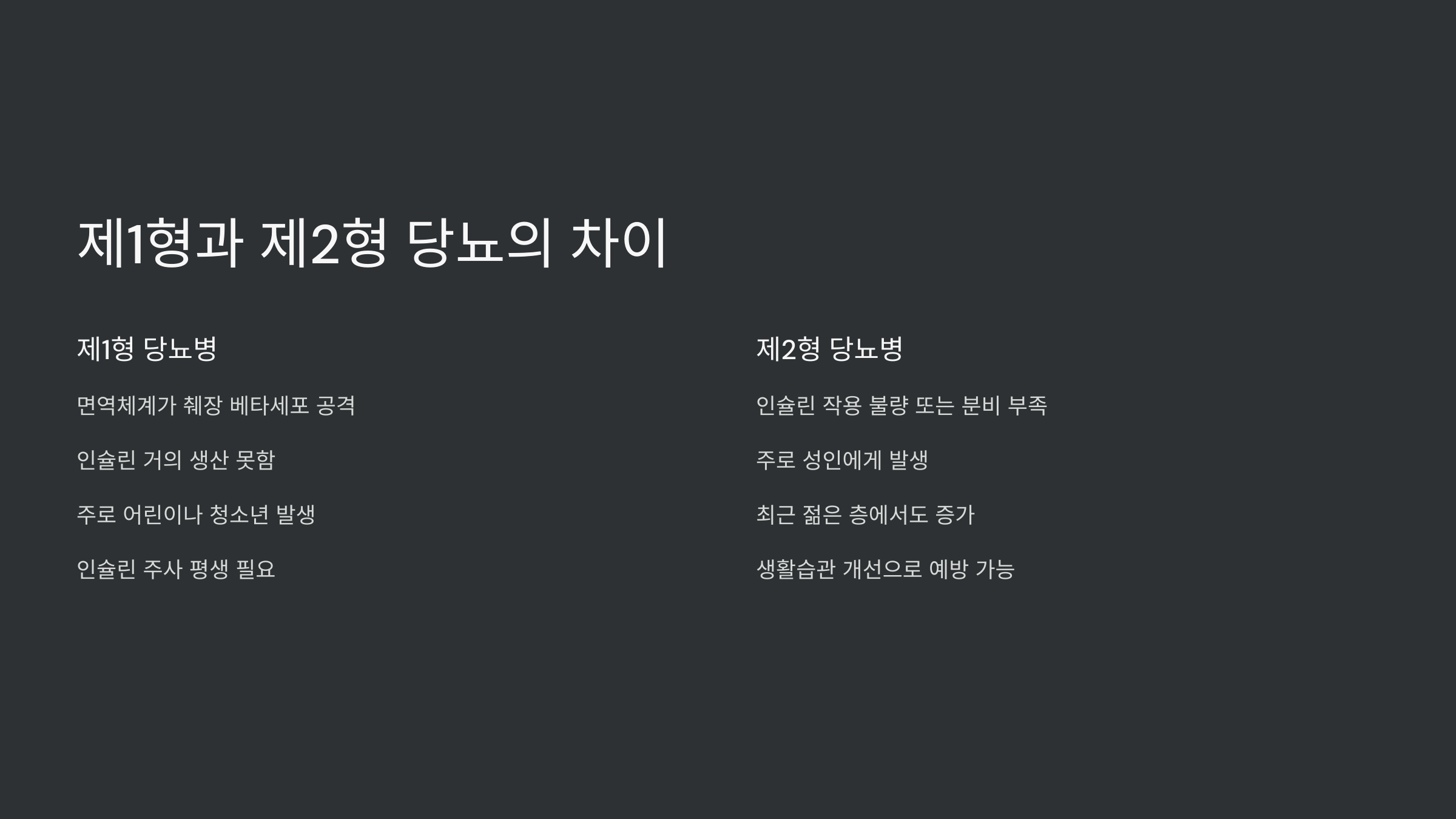 당뇨병은 크게 두 가지 유형으로 나뉘어요.