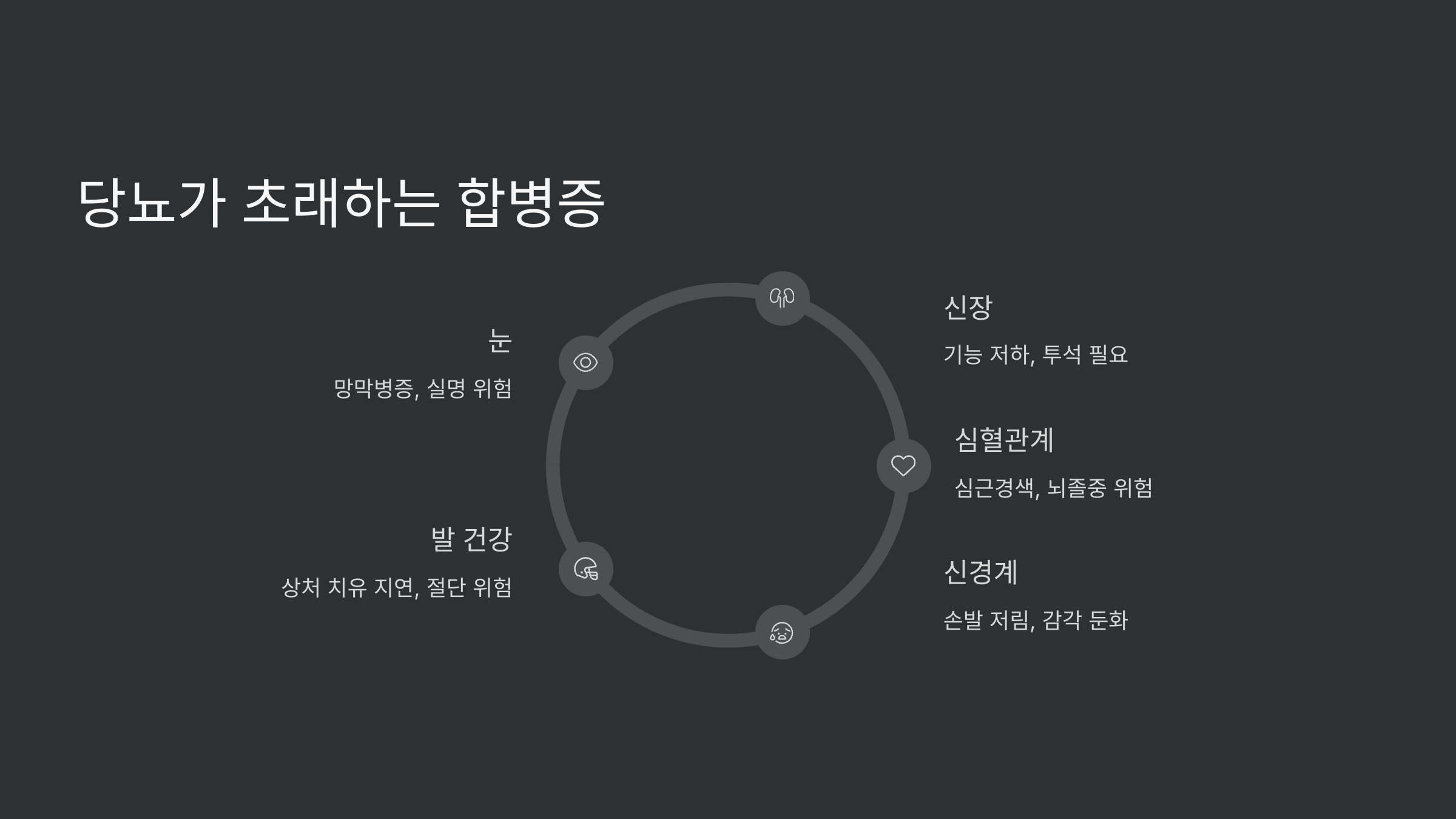이러한 합병증을 예방하려면 꾸준한 혈당 관리가 필수입니다!