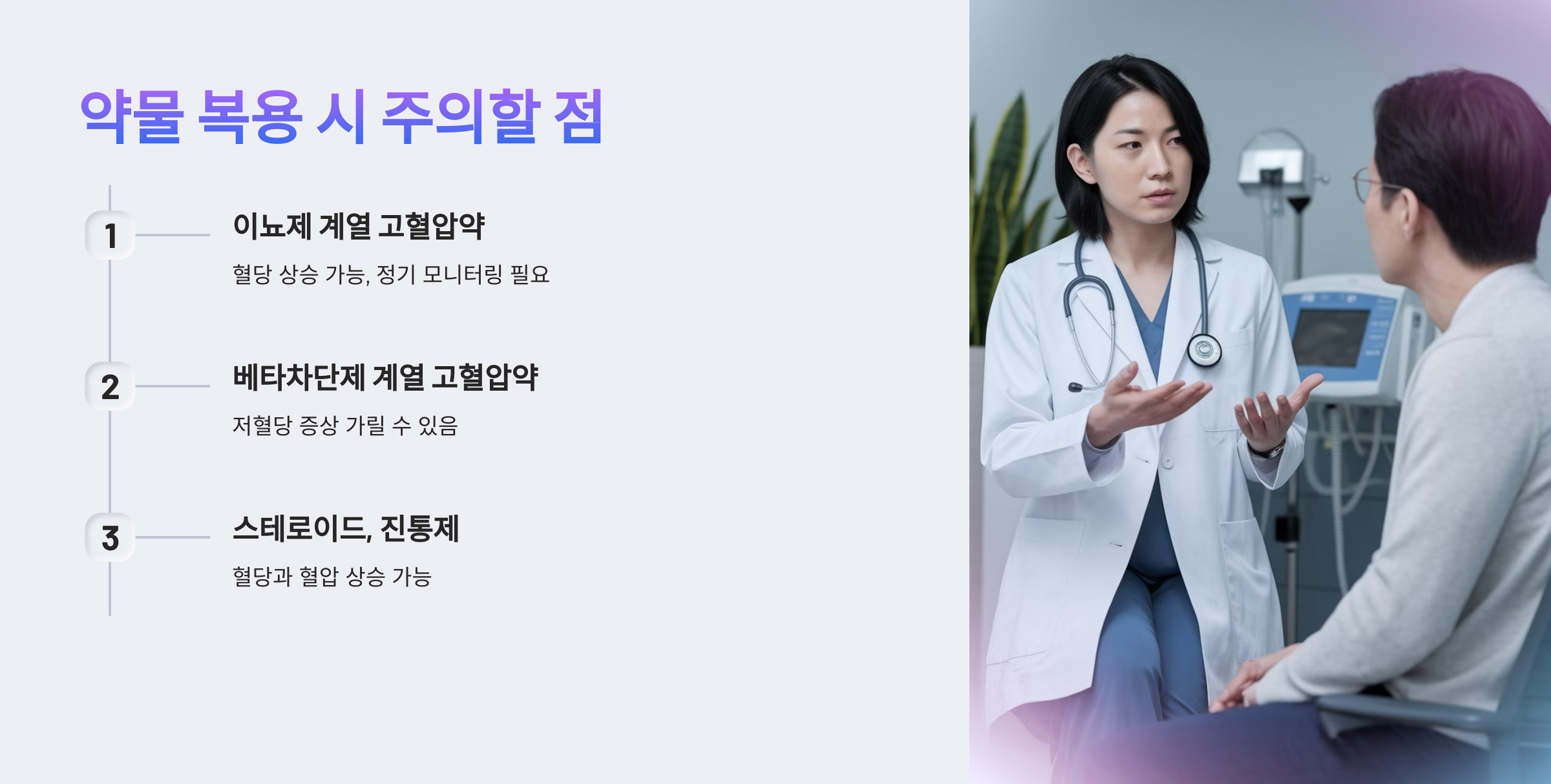 ✅ 스테로이드, 진통제 주의 → 혈당과 혈압을 상승시킬 수 있음