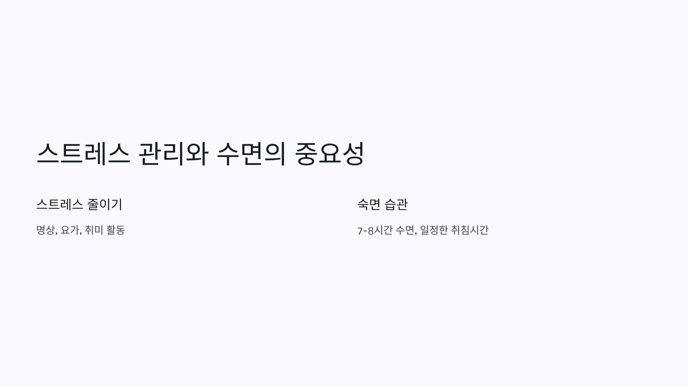 - 스트레스 관리와 수면의 중요성