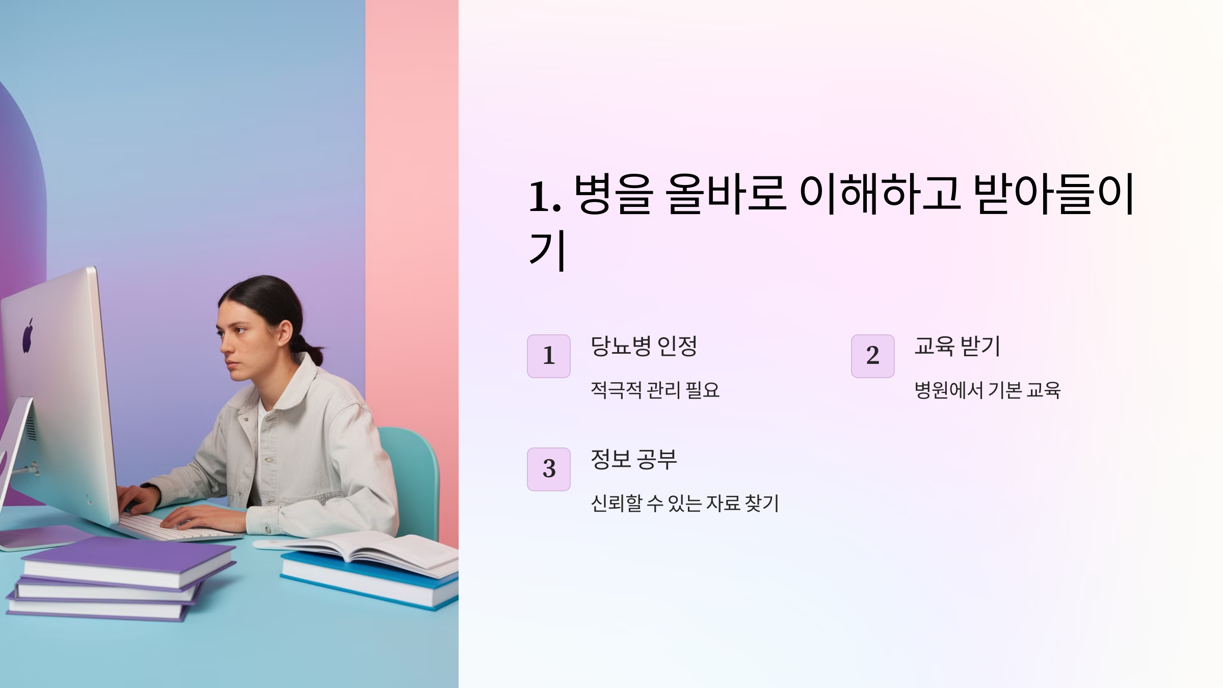👉 내가 당뇨병을 앓고 있다는 사실을 인정하고, 적극적으로 관리해야 합니다.