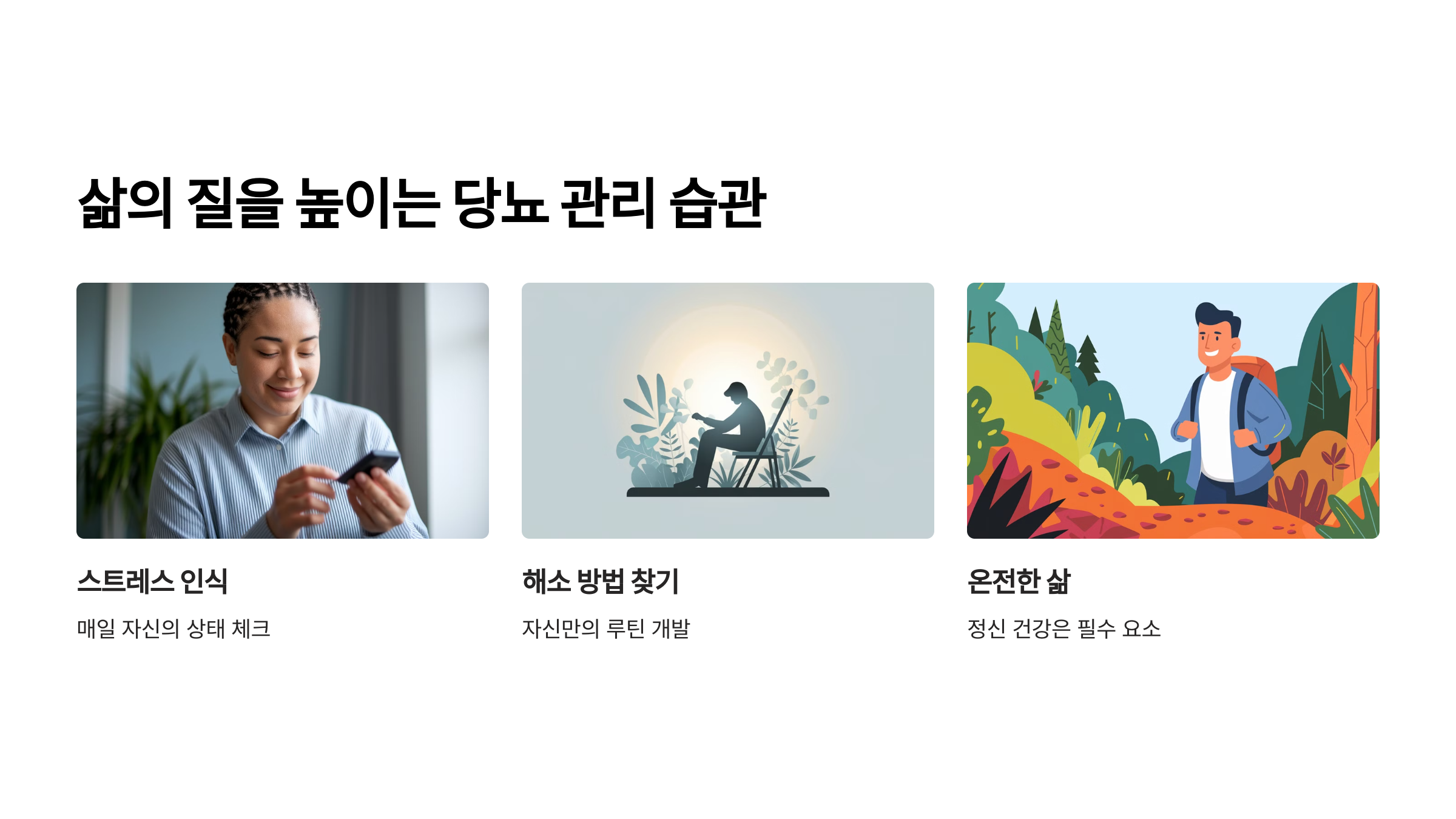 스트레스 관리는 당뇨 관리의 선택이 아닌 필수입니다. 매일 스트레스를 인식하고, 자신만의 해소 방법을 찾는 루틴을 만들어보세요. 그 과정에서 혈당 수치가 조금씩 좋아지는 걸 체험하실 거예요. 삶을 온전히 살아가는 데 있어서 정신 건강은 결코 부차적인 요소가 아닙니다.
