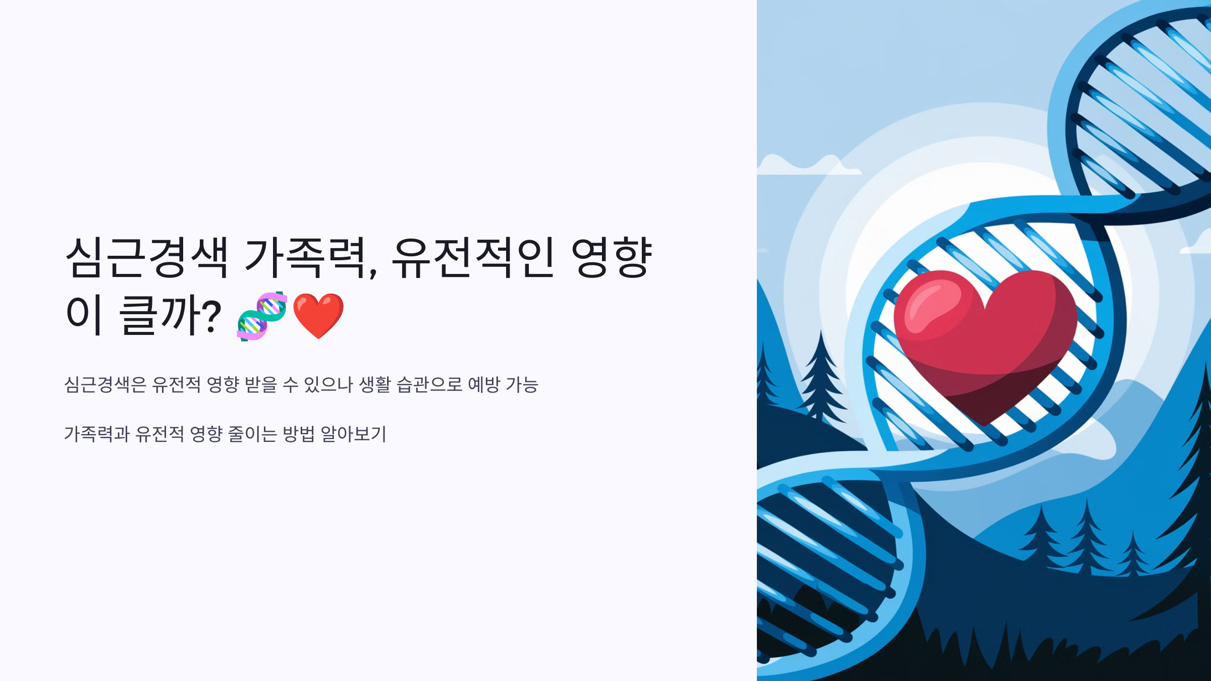 이런 고민을 해본 적 있나요? 심근경색은 유전적인 영향을 받을 수 있지만, 생활 습관에 따라 충분히 예방할 수 있습니다! 오늘은 심근경색과 가족력의 관계, 그리고 유전적 영향을 줄이는 방법에 대해 알아보겠습니다.