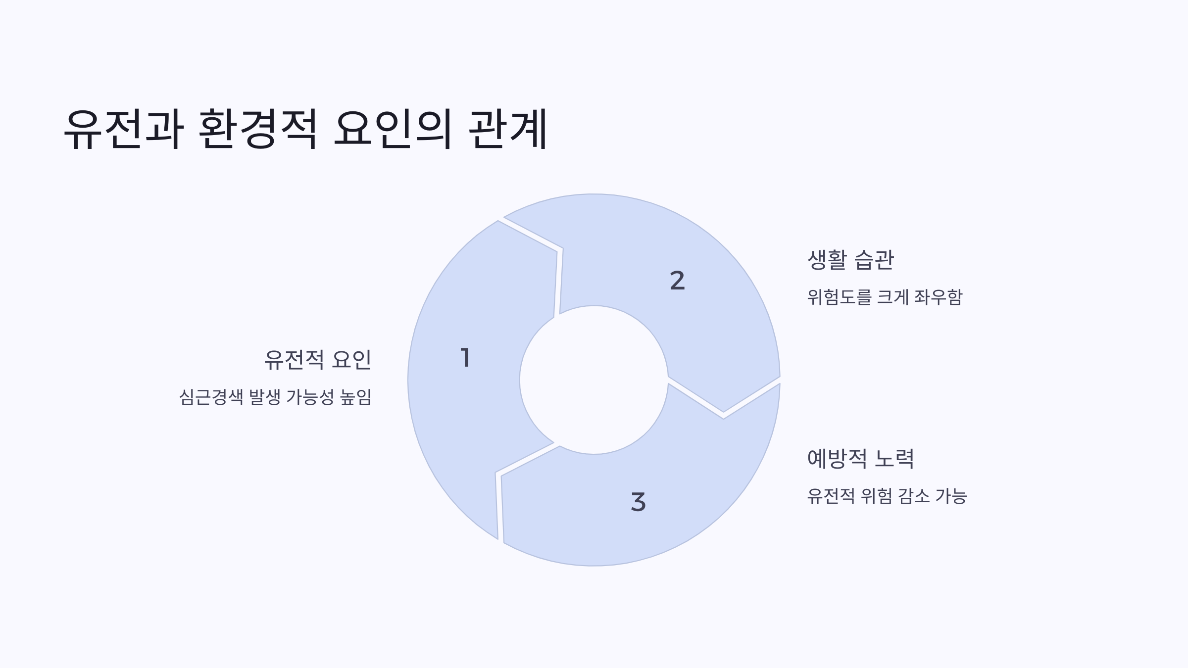 이 중에서도 유전적 요인은 심근경색 위험을 높이는 중요한 요소로 작용합니다.