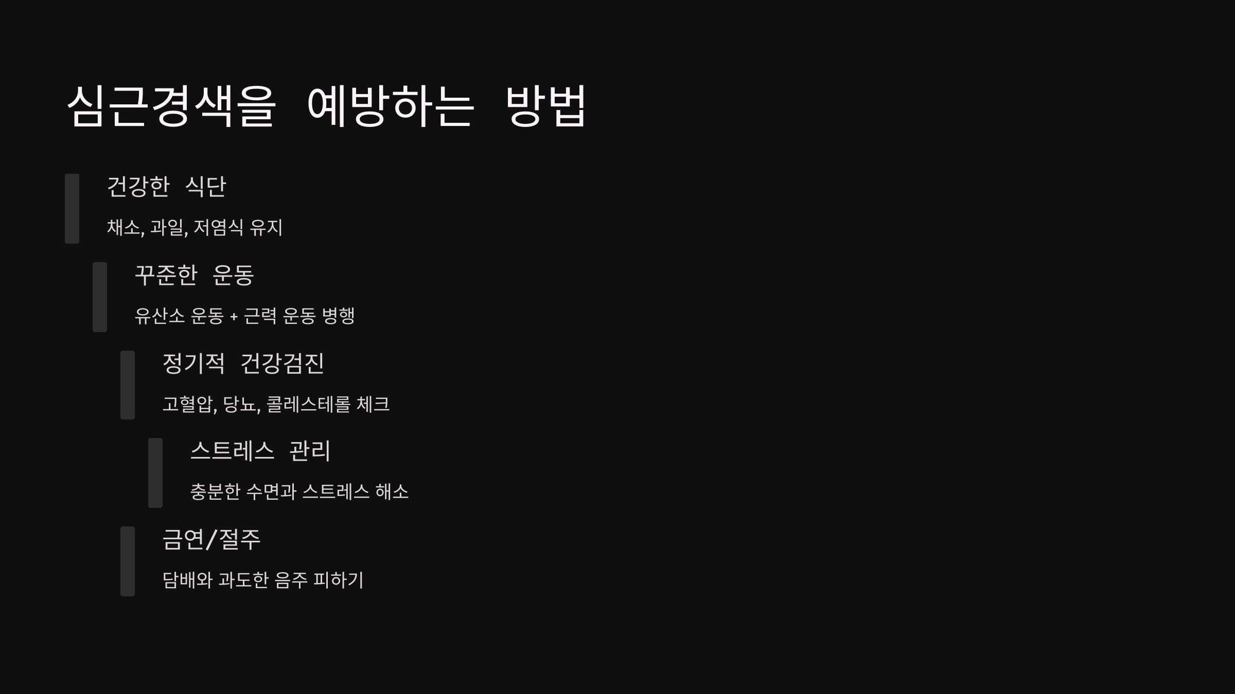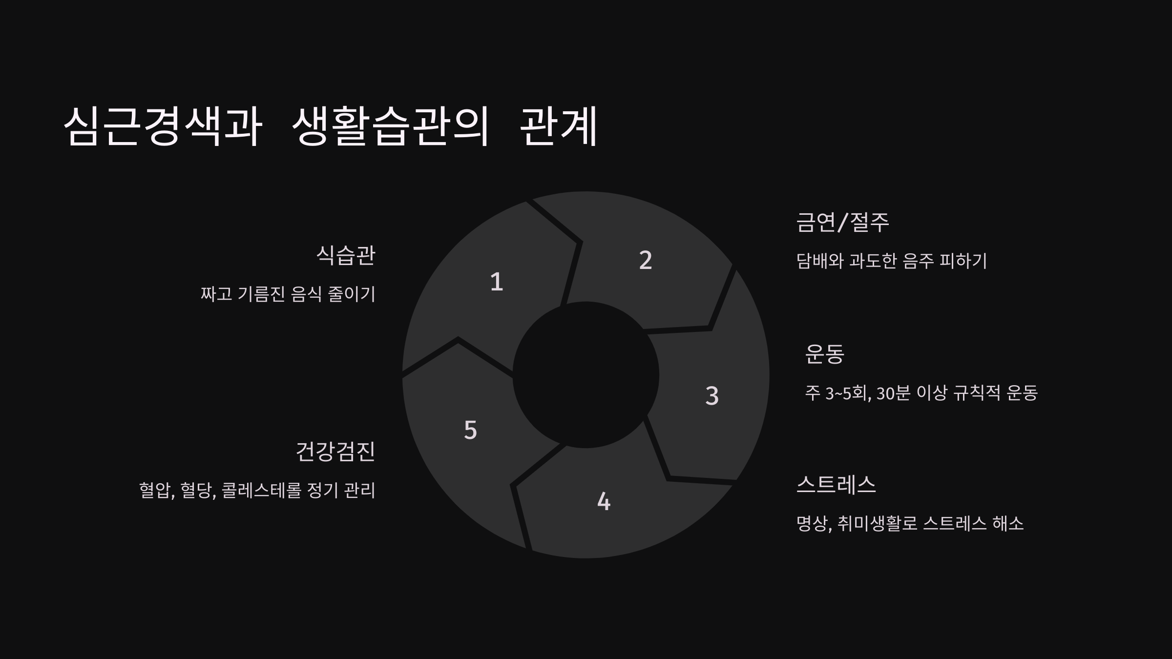 - 규칙적인 운동 (주 3~5회, 30분 이상)