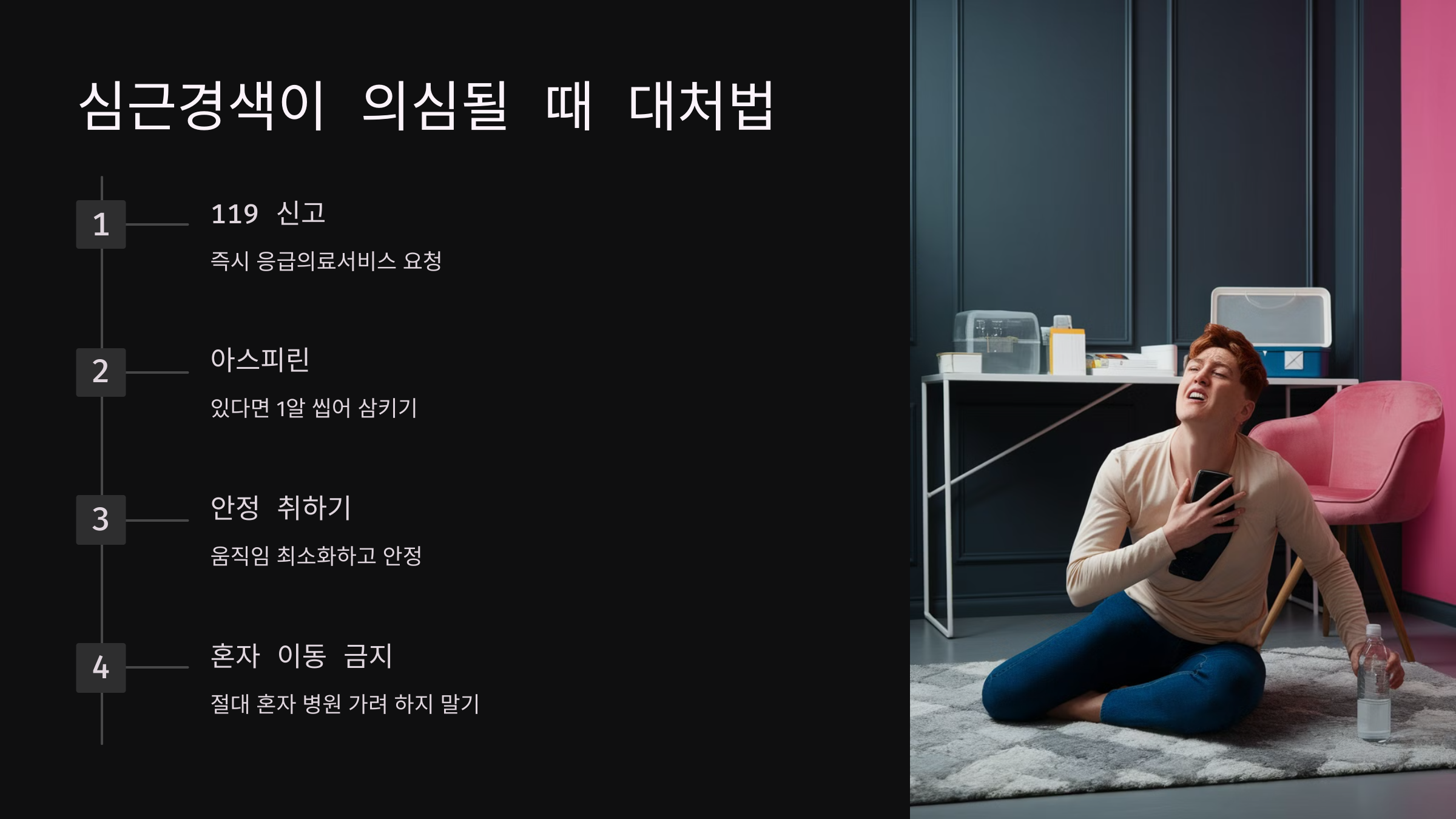 💊 아스피린이 있다면 1알 씹어 삼키기