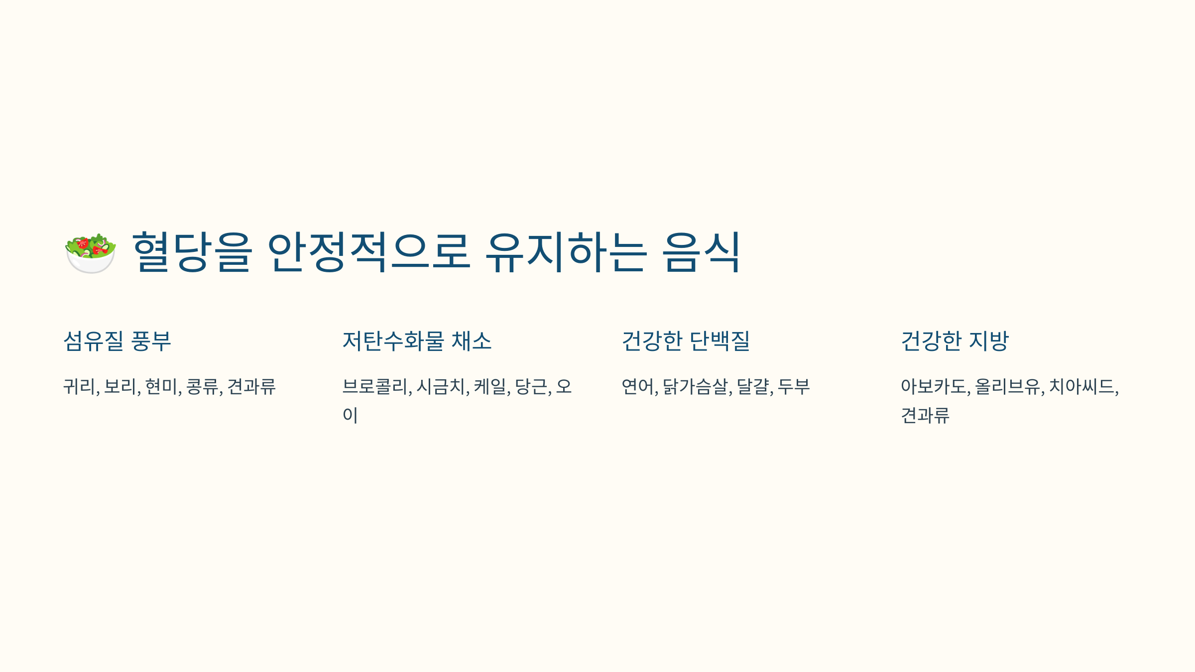 - 혈당을 안정적으로 유지하는 음식