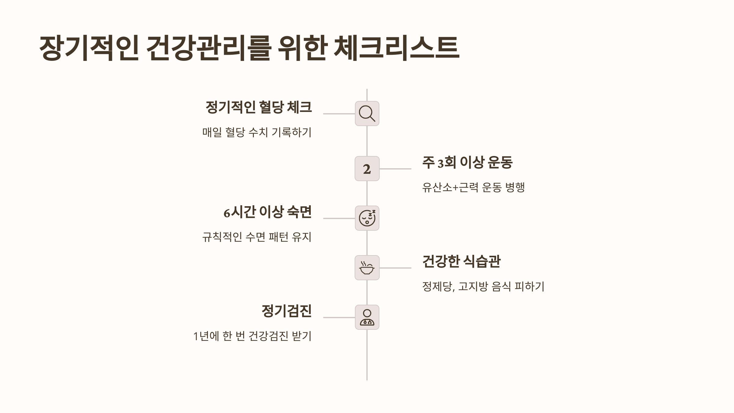 장기적으로 당뇨를 관리하기 위해선 다음의 체크리스트를 기억하세요: