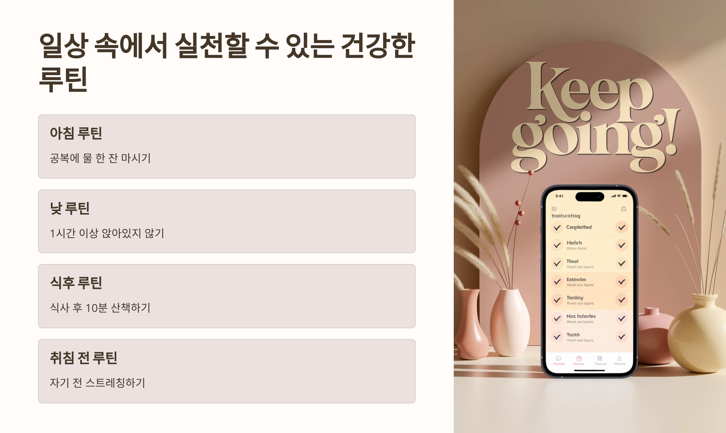 - 일상 속에서 실천할 수 있는 건강한 루틴