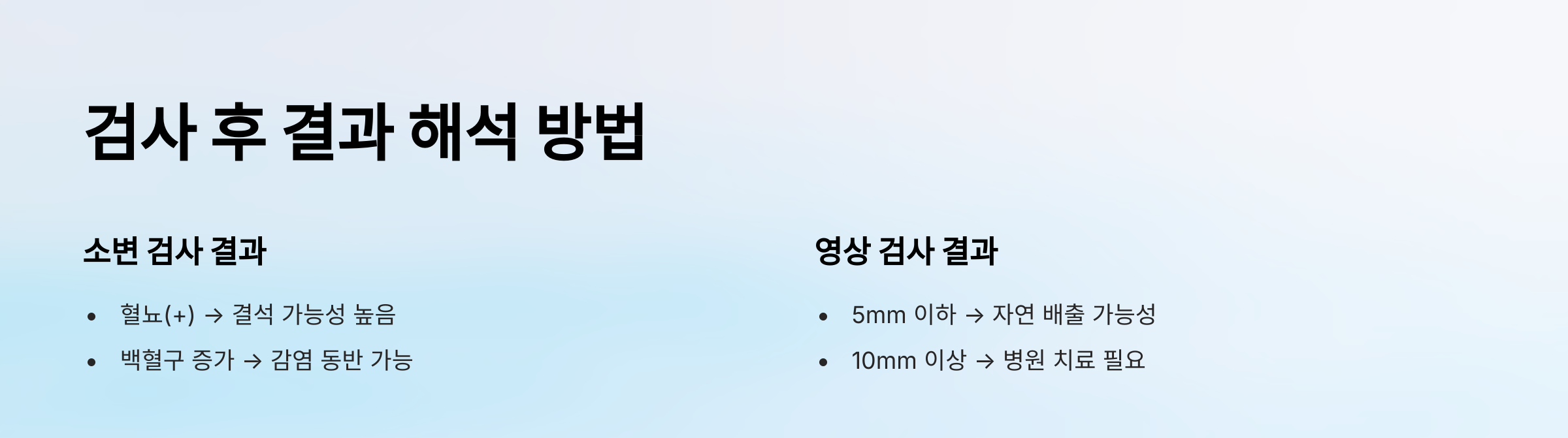 💡 결석이 5mm 이하이면 자연 배출을 유도하고, 크면 시술을 고려할 수 있습니다.