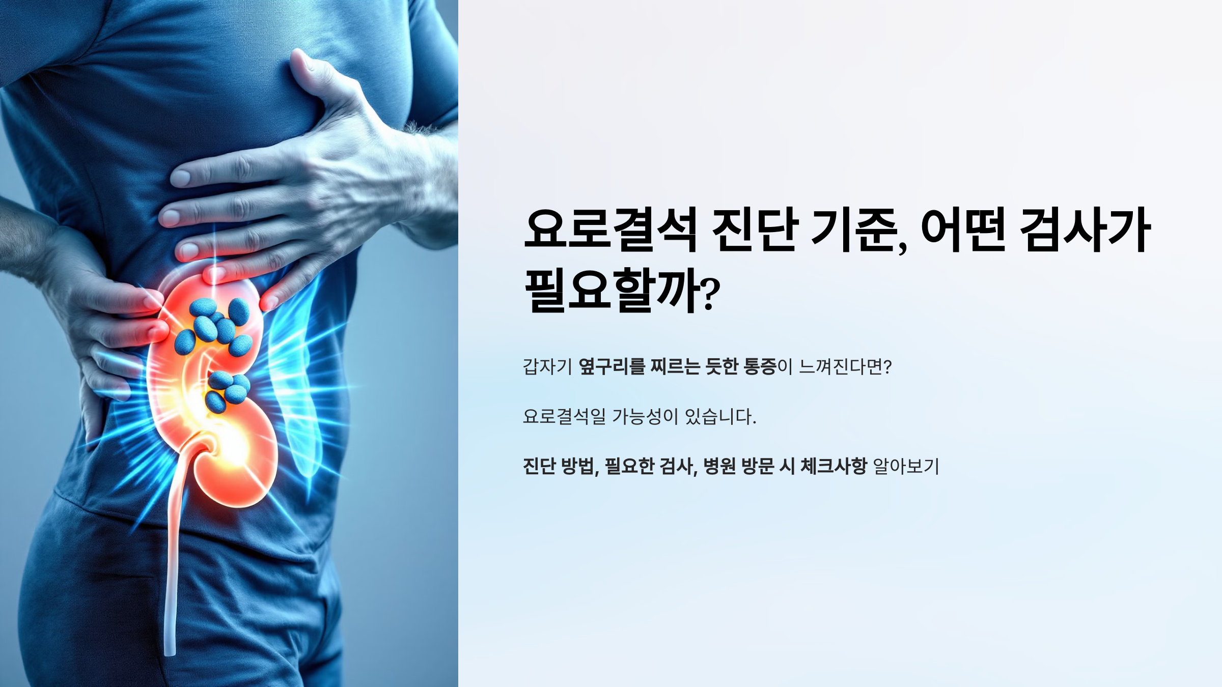 갑자기 옆구리를 찌르는 듯한 통증이 느껴진다면? 요로결석일 가능성이 있습니다. 하지만 단순한 복통인지, 요로결석인지 어떻게 알 수 있을까요? 🤔 오늘은 요로결석을 진단하는 방법, 필요한 검사, 병원 방문 시 체크할 사항을 알려드릴게요!