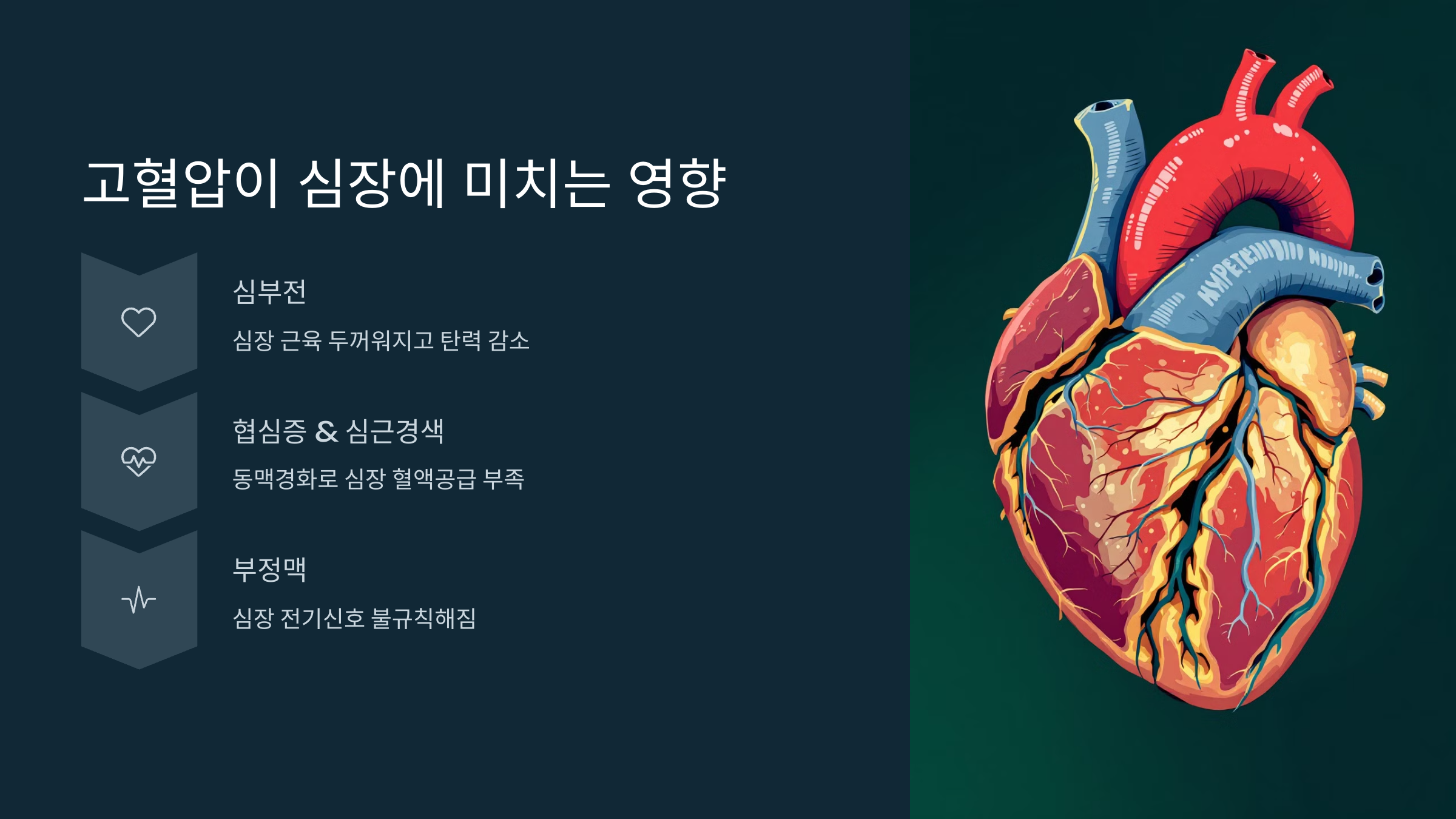 💡 고혈압을 조절하지 않으면 심장이 점점 약해지고, 심장마비 위험도 커질 수 있어요!