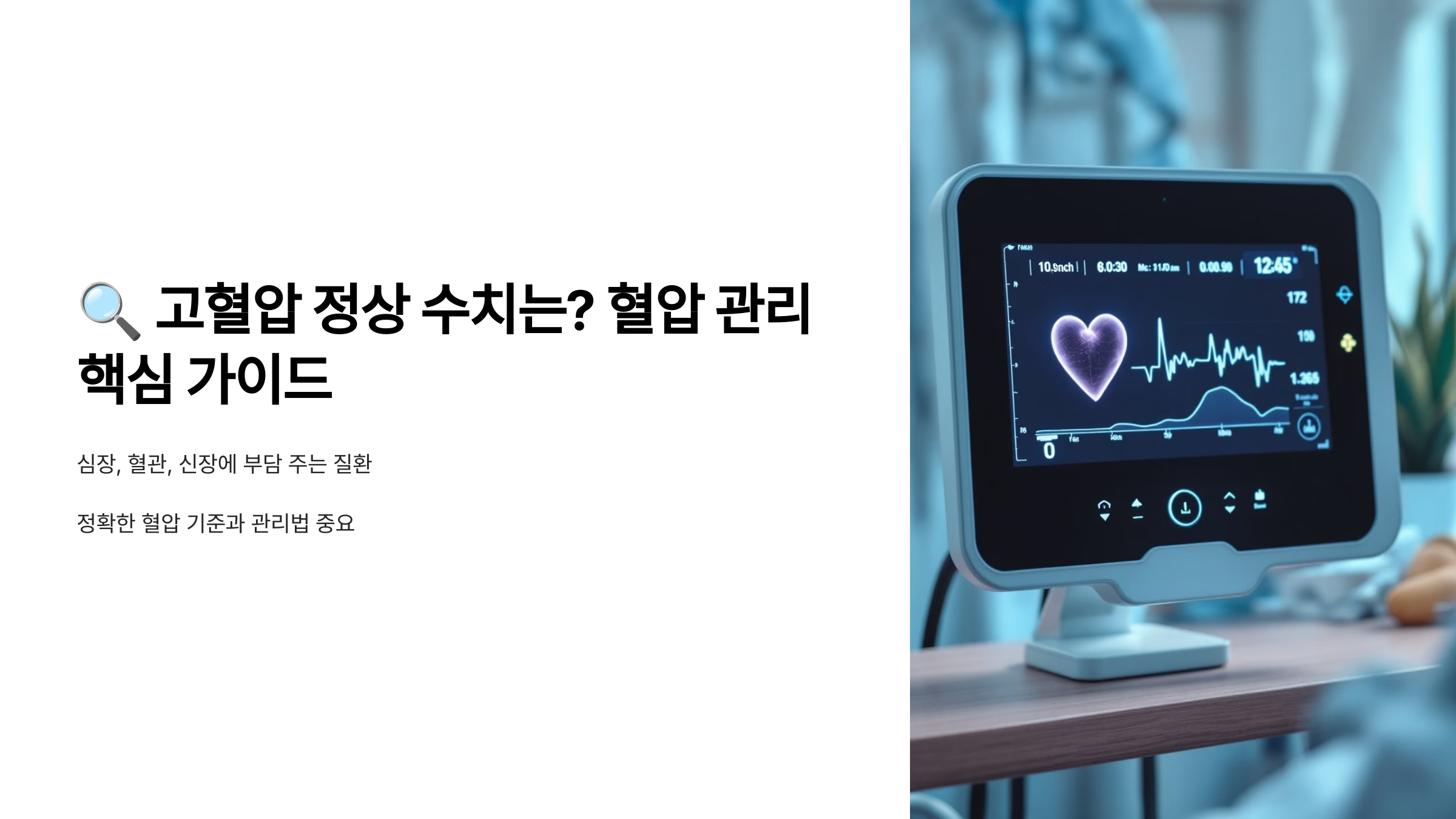고혈압은 뚜렷한 증상이 없어도 심장, 혈관, 신장 등에 부담을 주는 질환이기 때문에 정확한 혈압 기준과 관리법을 아는 것이 중요합니다. 오늘은 정상 혈압 수치, 고혈압 진단 기준, 그리고 효과적인 혈압 관리 방법까지 자세히 알려드릴게요!