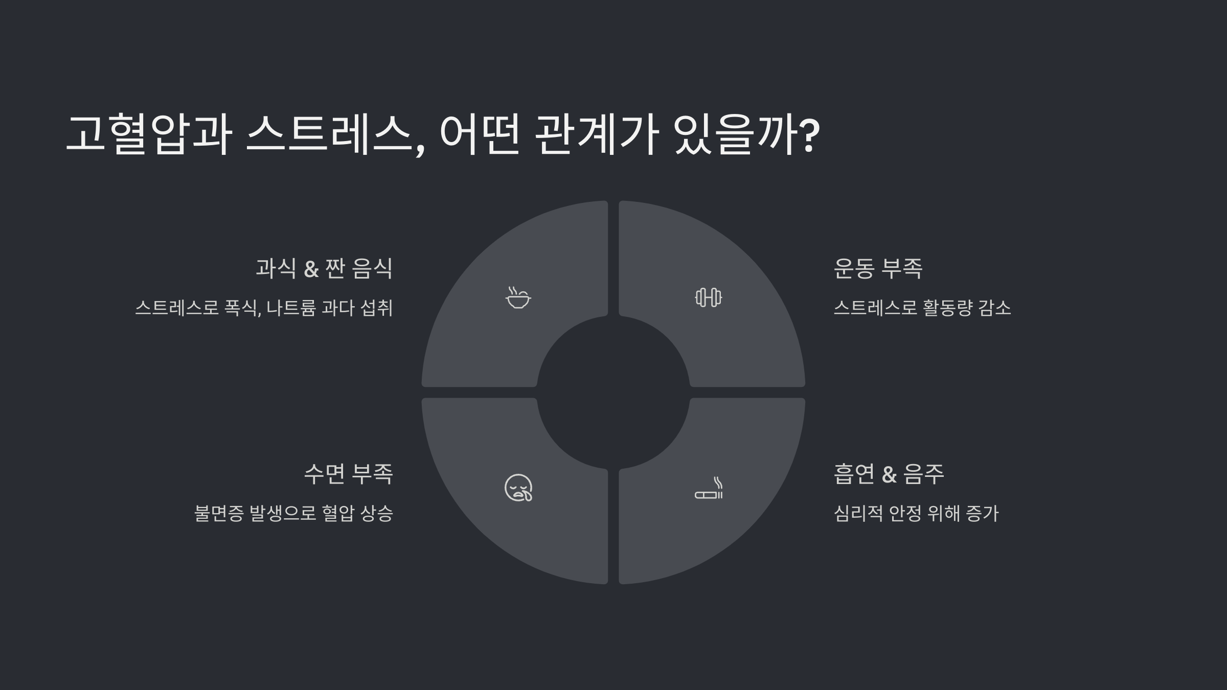 💡 스트레스는 단순한 혈압 상승뿐만 아니라, ‘생활 습관의 악화’로 인해 고혈압을 유발할 가능성이 큽니다!