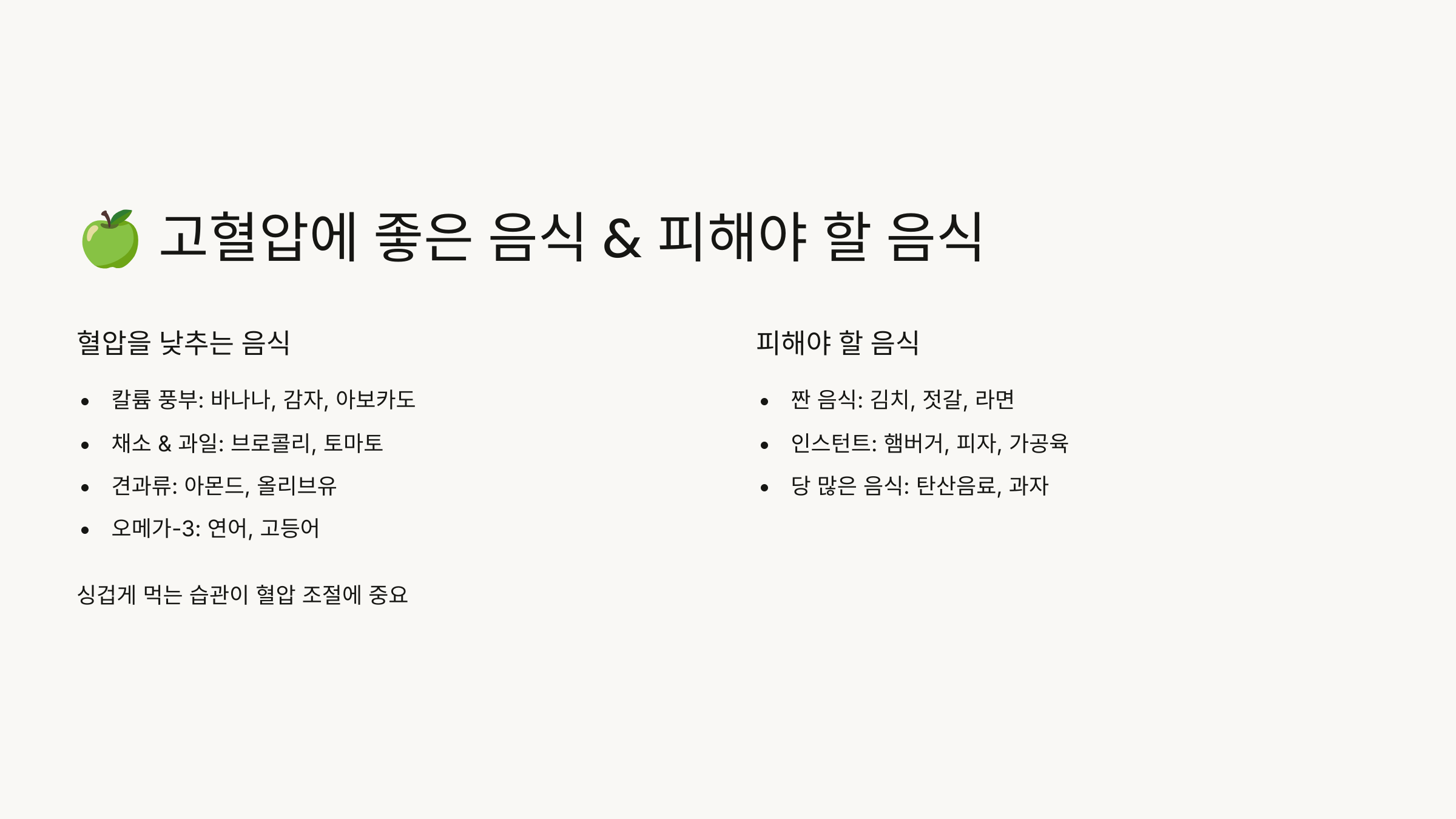🍏 고혈압에 좋은 음식 & 피해야 할 음식