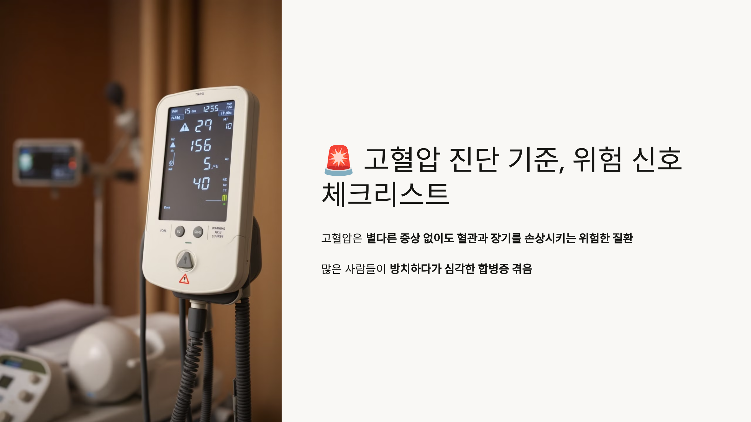 오늘은 고혈압 진단 기준, 위험 신호, 그리고 예방을 위한 생활 습관까지 자세히 알려드릴게요!