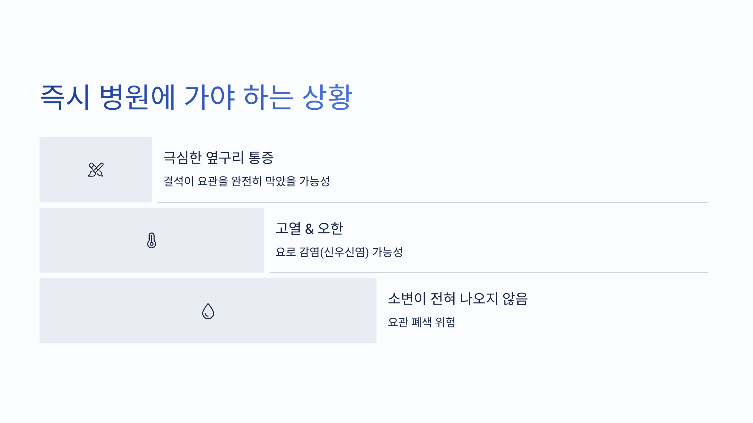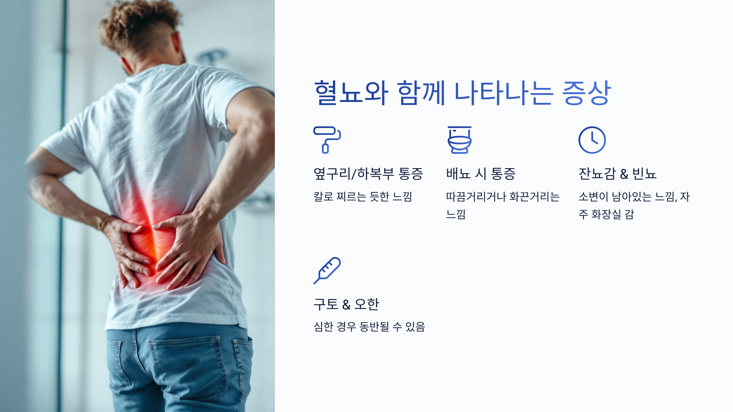 💡 이런 증상이 함께 나타난다면, 요로결석 가능성이 높으므로 병원 방문이 필요합니다!