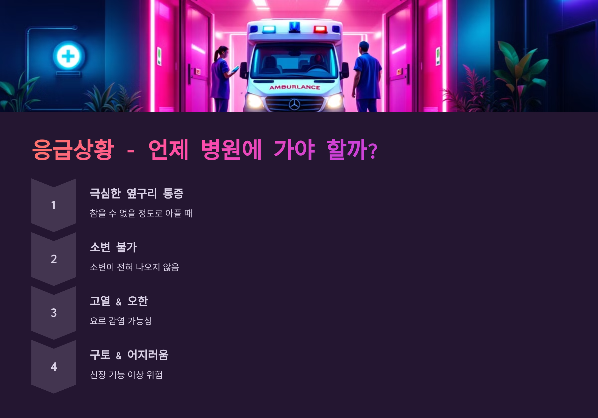 ✅ 극심한 옆구리 통증 → 참을 수 없을 정도로 아플 때