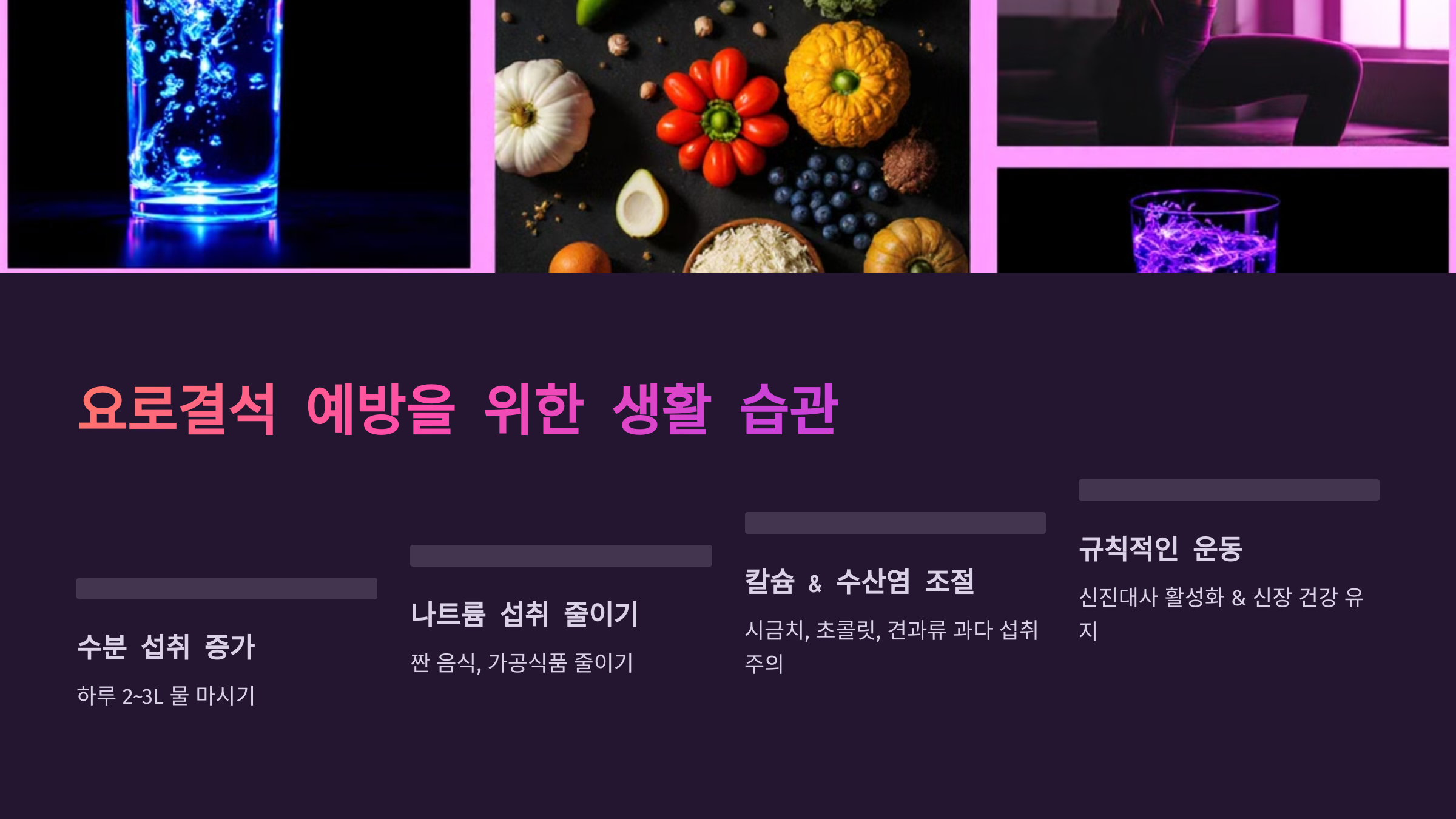 - 요로결석 예방을 위한 생활 습관