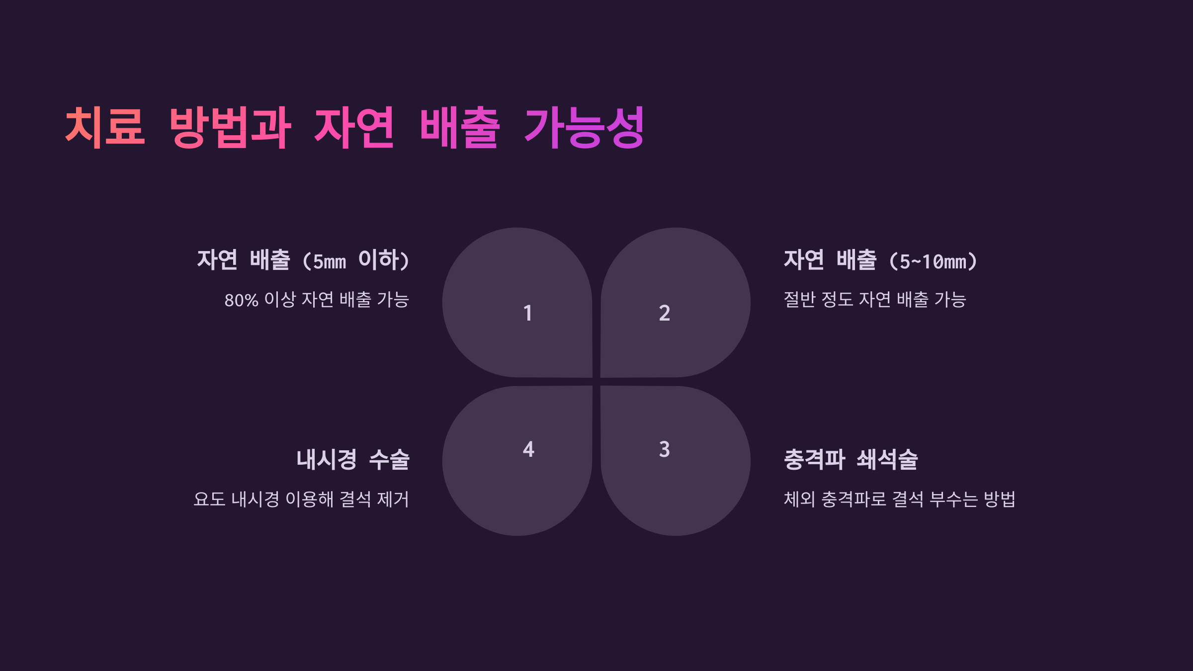 - 치료 방법과 자연 배출 가능성