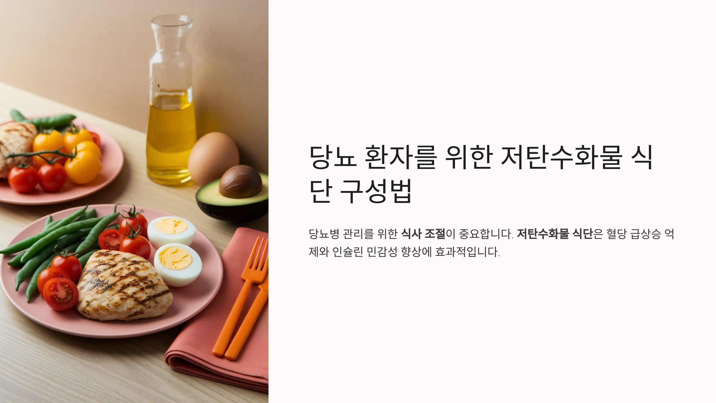 특히 저탄수화물 식단은 혈당 급상승을 억제하고, 인슐린 민감성을 높여 당뇨 환자들에게 매우 효과적인 전략으로 평가받고 있습니다.