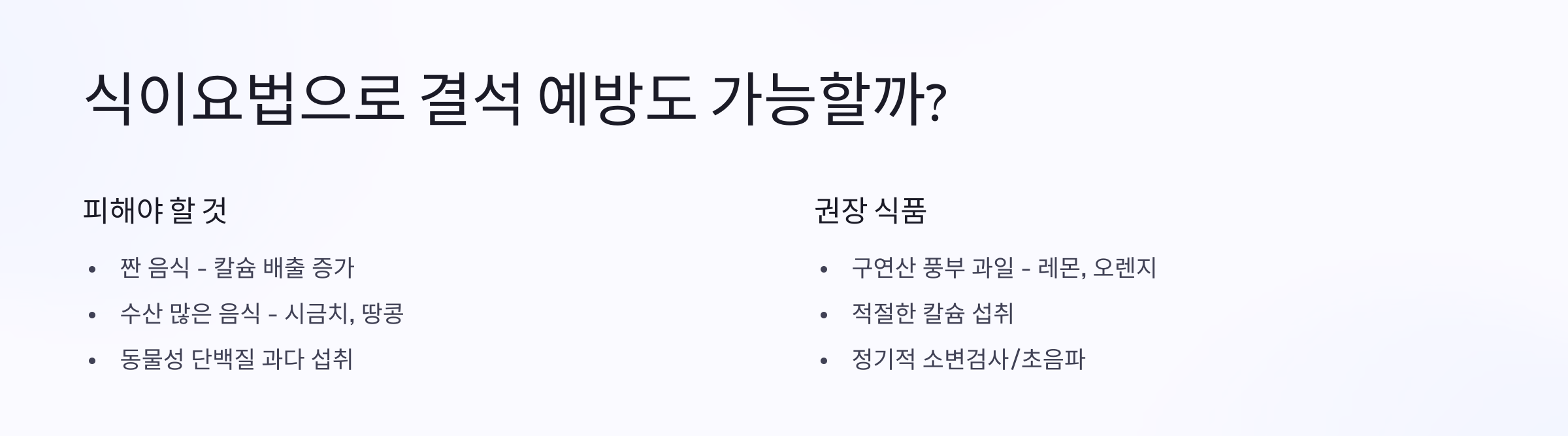 네, 식단 조절은 결석 예방과 재발 방지에 매우 중요합니다. 🥗